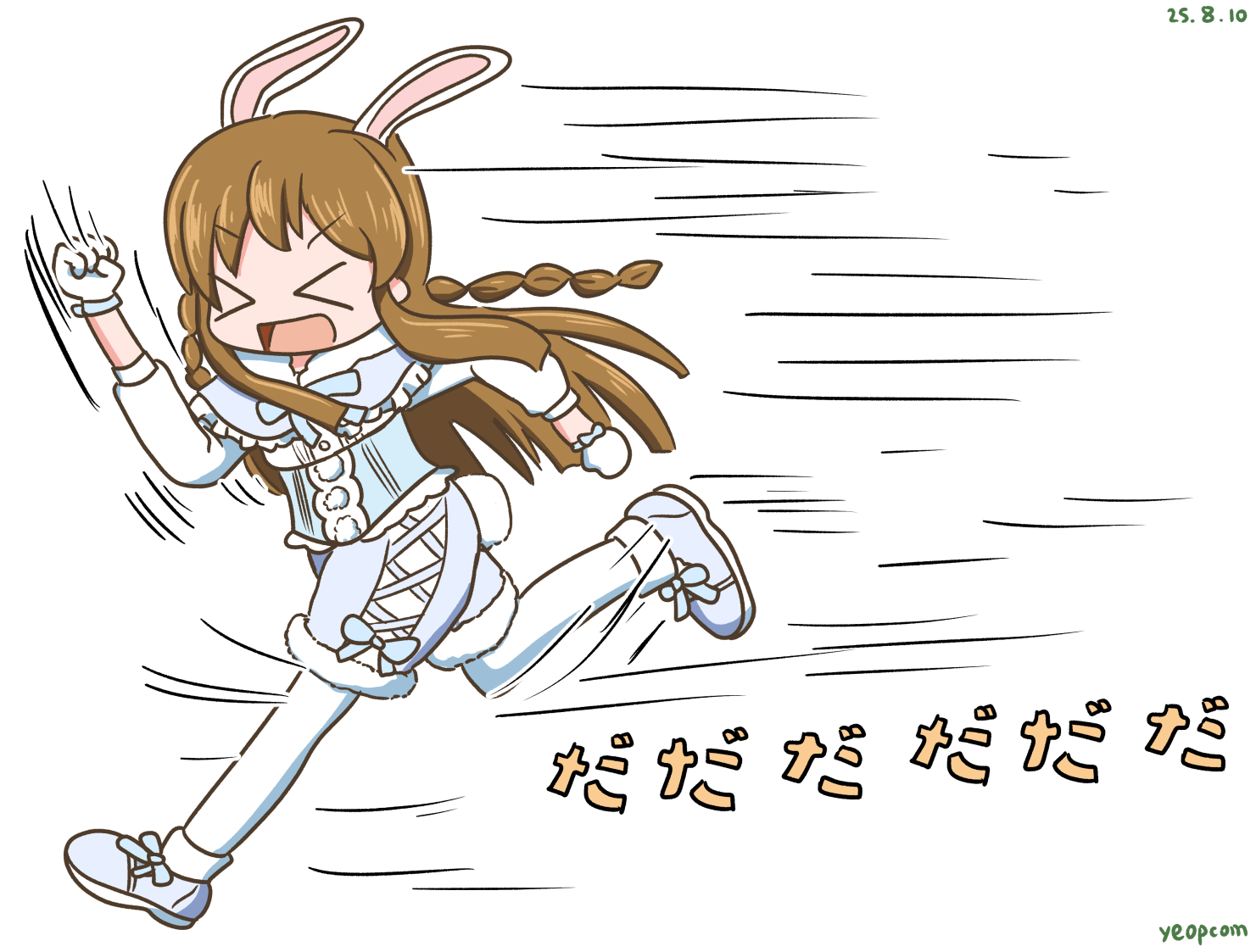 토끼 복장으로 빠르게 달리는 모습으로 간단하게(라고 하기엔 복장이 좀 복잡해서 고생하여) 그렸습니다.