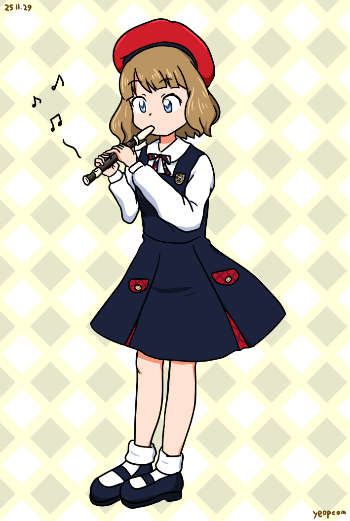 교복버전으로 리코더 부는 모모코 그림입니다. 근데 그리고나서 방금 알게된게 이쿠가 리코더 자주 분다는 걸 알게되었음요. 뭐 그렇다구요...